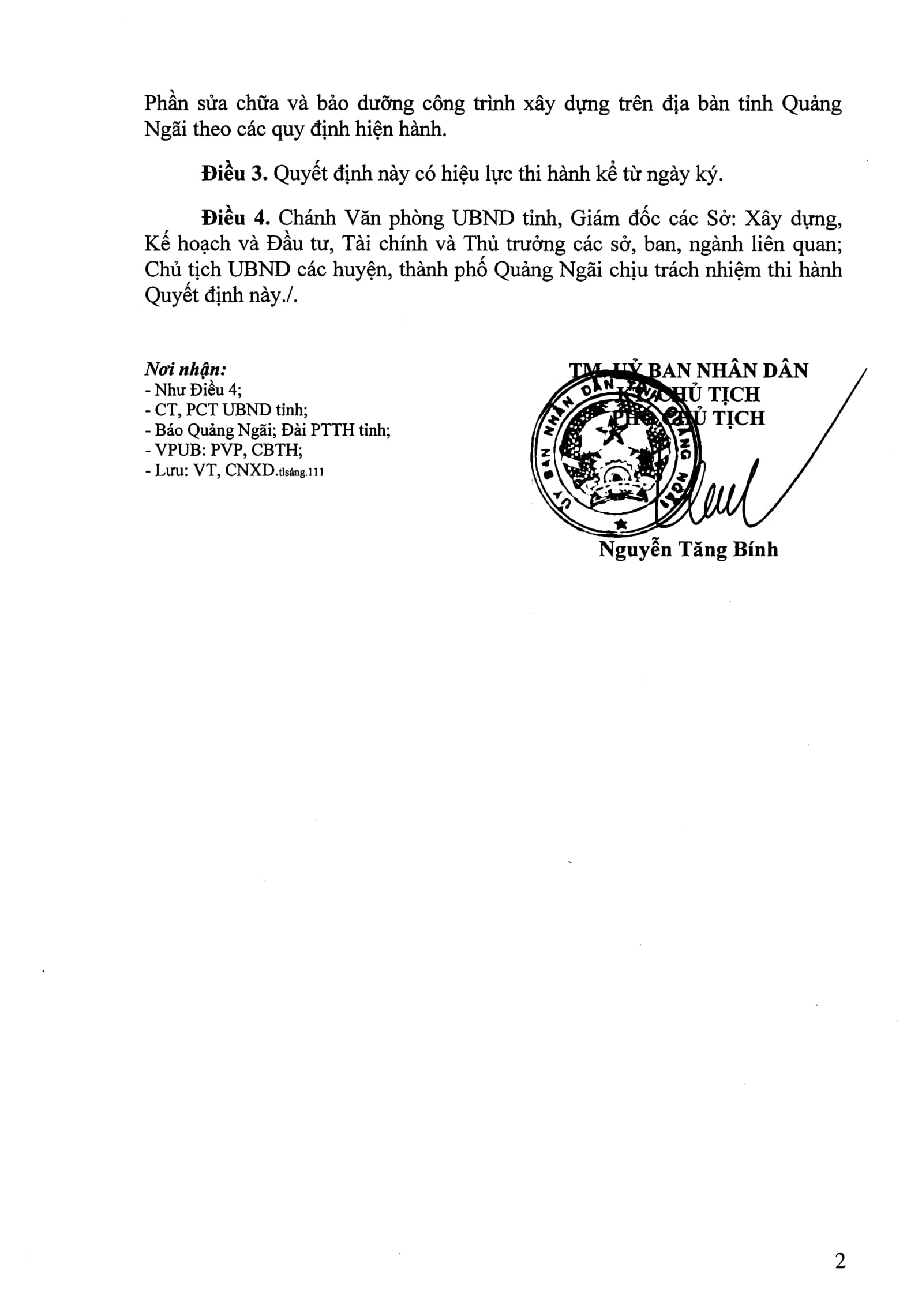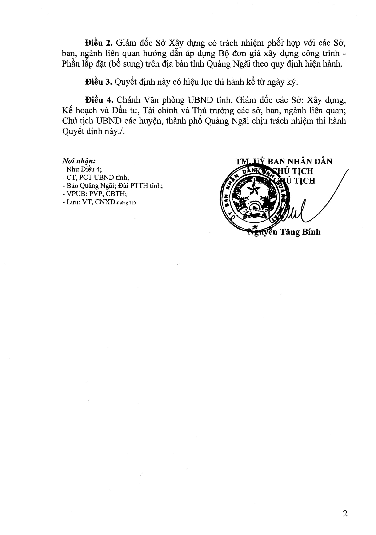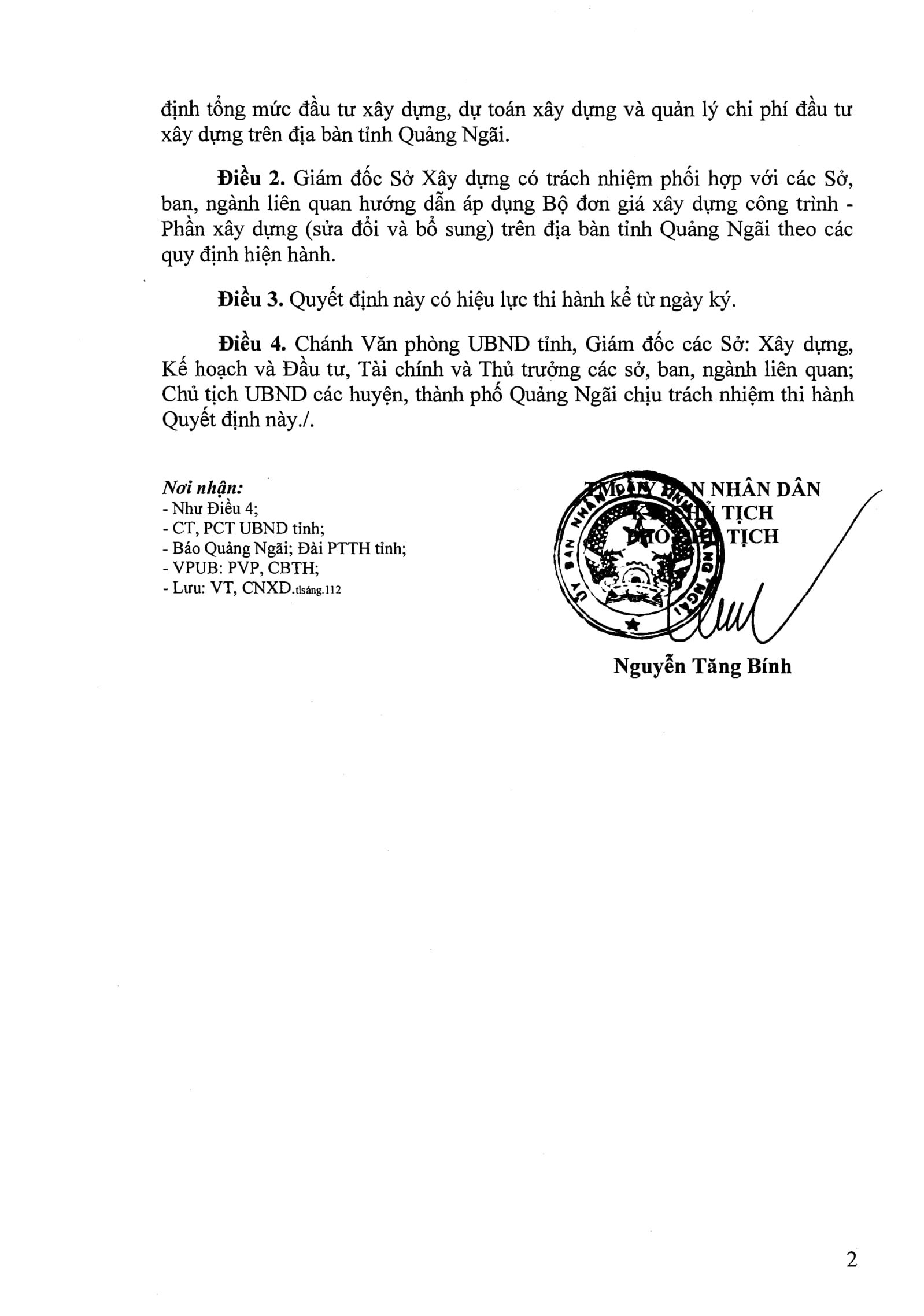 Ngày 30/03/2018, UBND tỉnh Quảng Ngãi đã ban hành Quyết định số 277/QĐ-UBND, 278/QĐ-UBND và 279/QĐ-UBND về việc Công bố bộ đơn giá phần xây dựng công trình trên địa bàn tỉnh Quảng Ngãi: phần sửa chữa, xây dựng (sửa đổi và bổ sung) và lắp đặt (bổ sung).